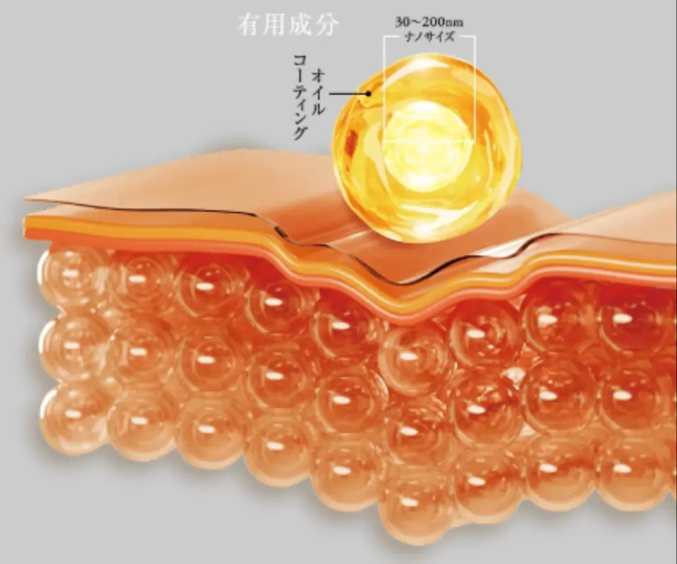 5-デアザブラビンをナノコート(油層)する技術を採用しています。吸収技術に関する特許※2も取得済みです。