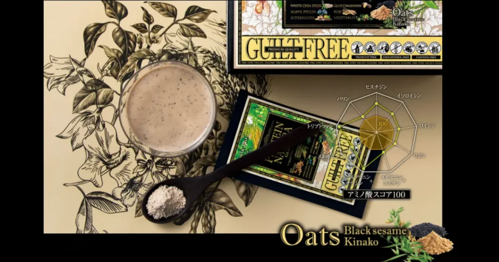 オーツ麦に香り高い黒すりごまと深煎り焙煎の京きな粉を使用