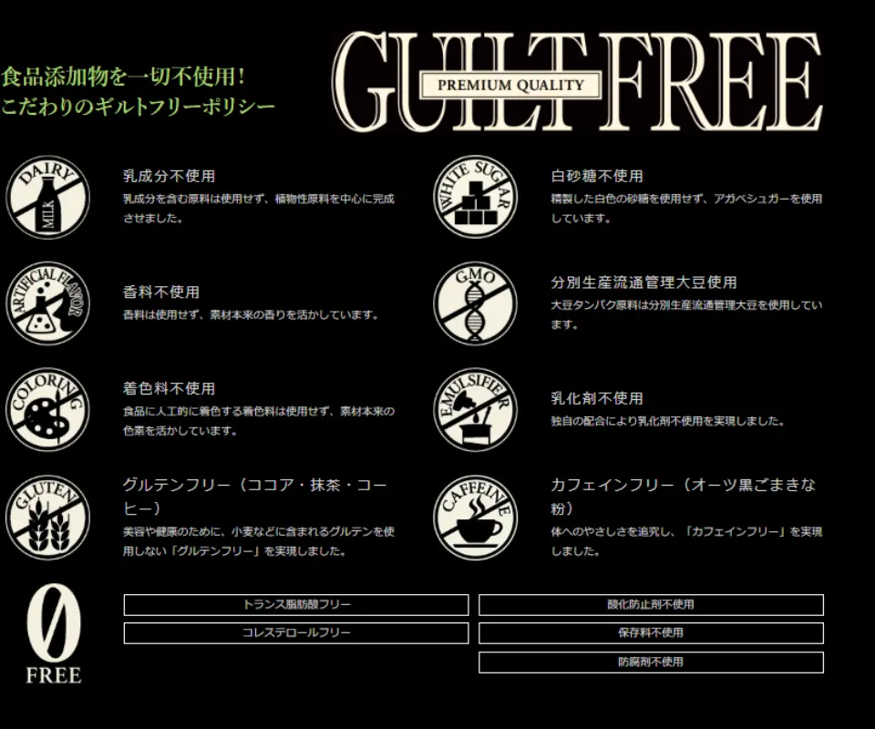 | 乳成分不使用 | 白砂糖不使用 | 香料不使用 |