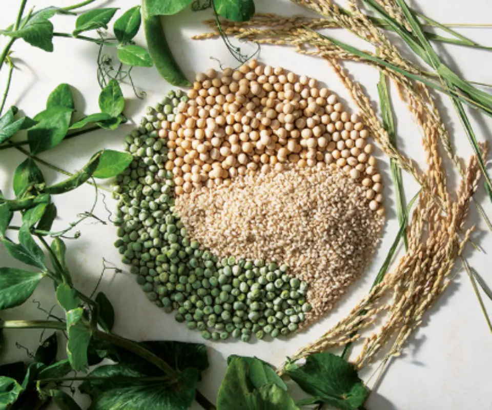 植物性タンパクは、動物性タンパクに比べ、脂質が比較的低く、消化・吸収のスピードがゆっくりで体に負担をかけない高タンパク低脂質の原料です。